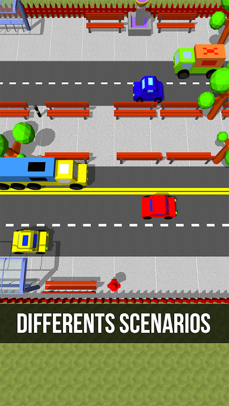 Cố gắng băng qua đường trong các tình huống khác nhau và khó khăn. Tránh xe ô tô, xe tải, xe tải và tất cả các loại chướng ngại vật mà bạn tìm thấy trên đường.