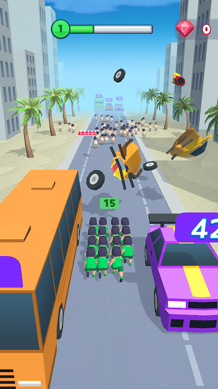 Drag to control the Crowd, Grow the biggest crowd and smash the city.