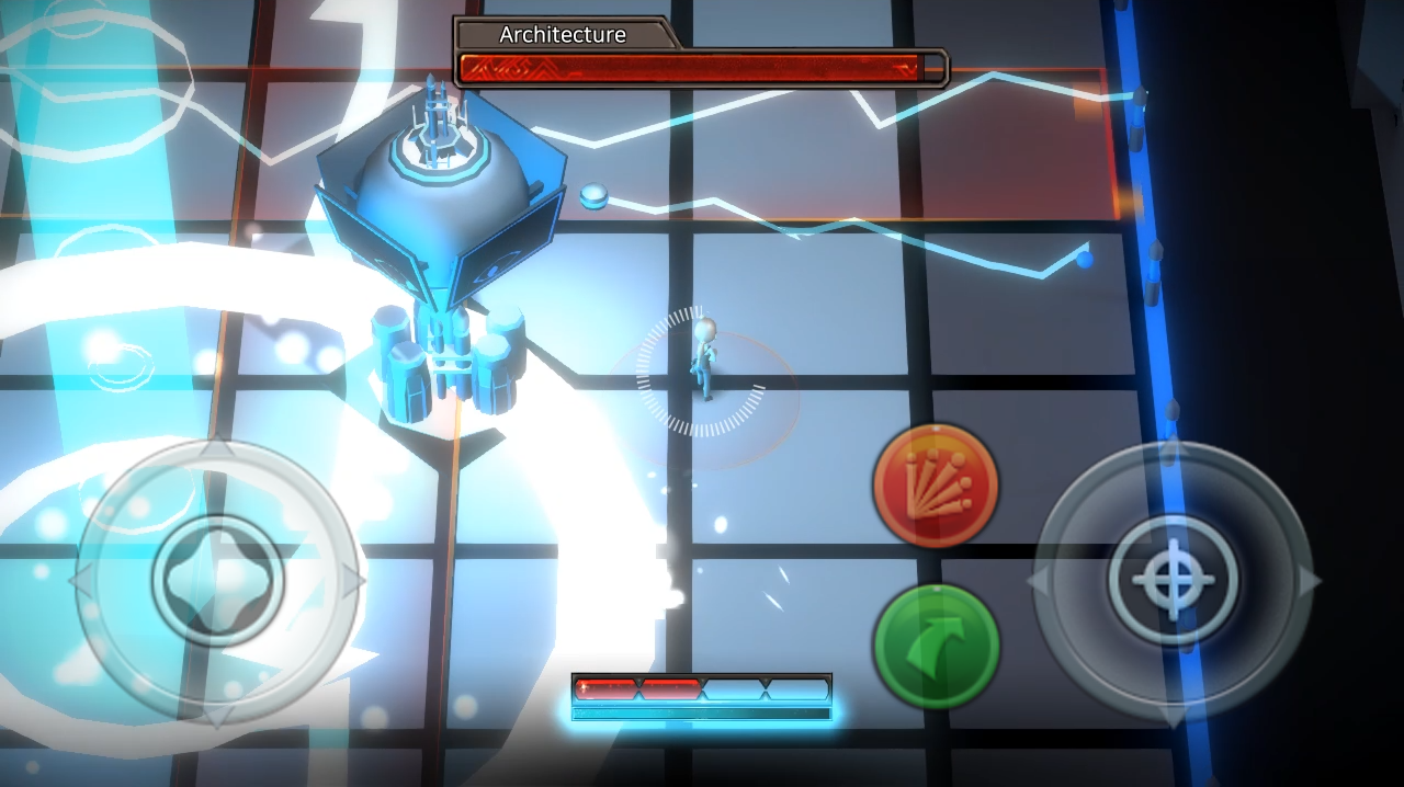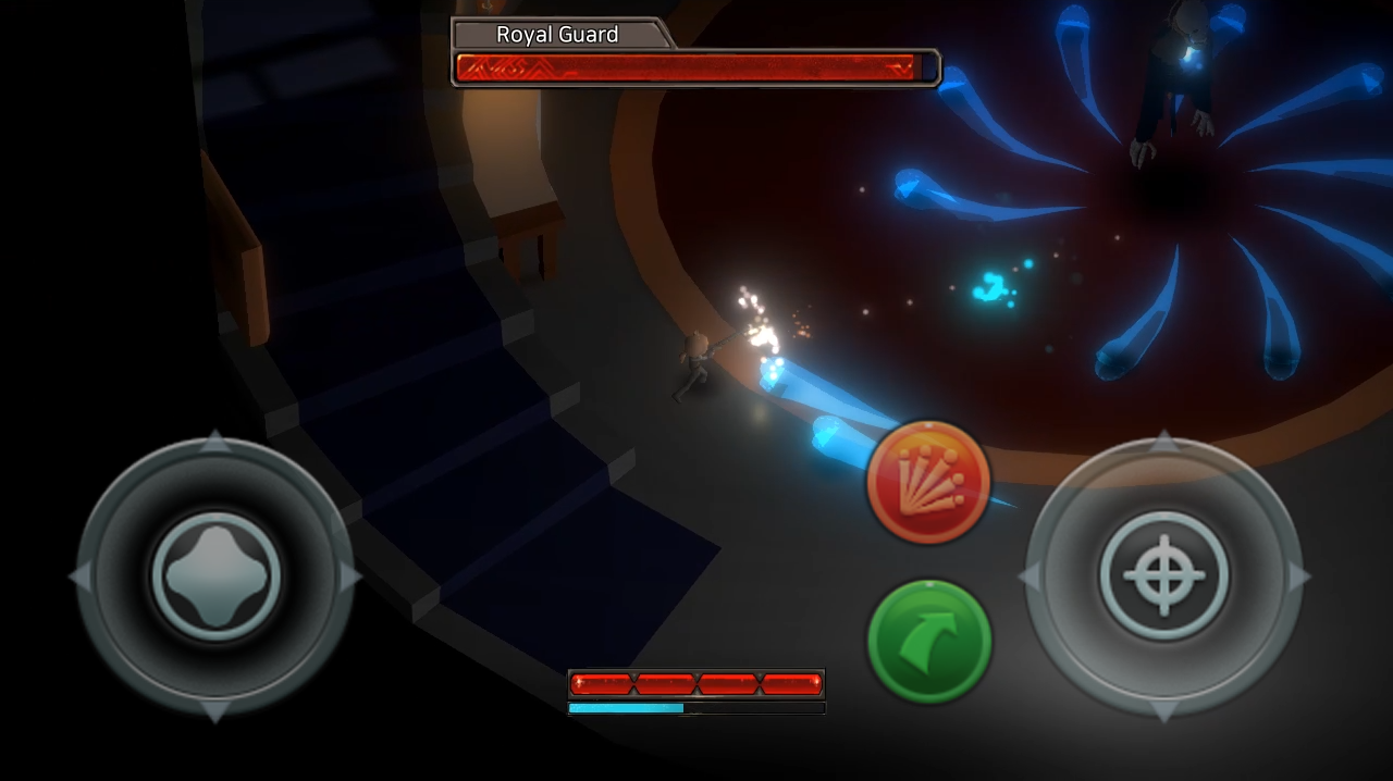 - 좌측의 가상 스틱으로 움직임 방향을 조절, 이동할 수 있습니다.
