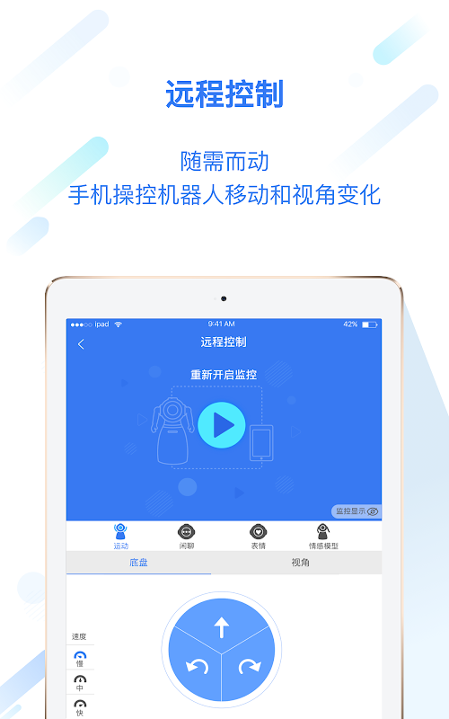Through this app, you can achieve remote control, video monitering, video customer service, real-time monitoring of robot performance status, and so on. This app also allows you to grasp the robot's behavior and what it sees and hears: