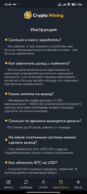 - Улучшение оборудования: обновляйте и улучшайте свою майнинговую ферму для увеличения дроизвоительности.