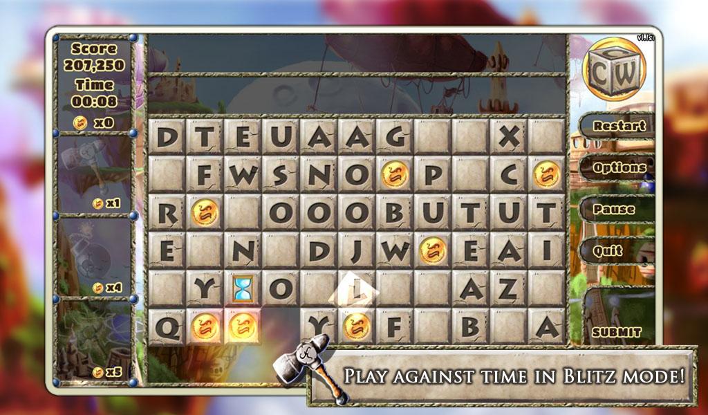 In Blitz mode, play against time as you try to score as high a score as possible, unlocking more time and power-ups in the process! The longer the word, the higher the score! And the higher the score, the better chance you have at getting into the World's Top 10!
