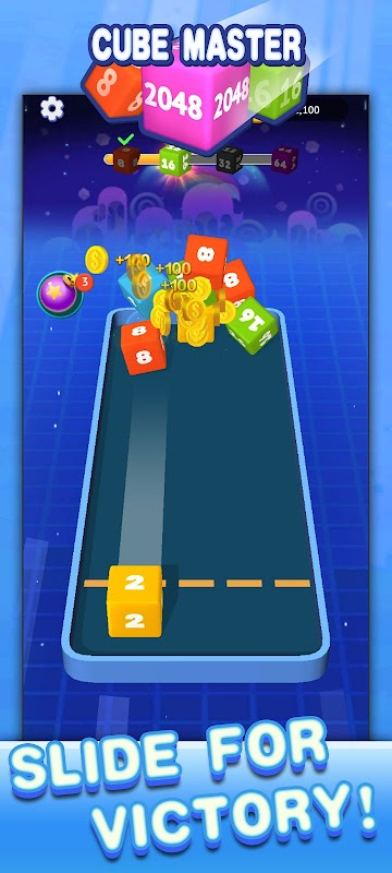 Đánh khối lập phương có cùng màu và số, ghép chúng để có 2048 khối.