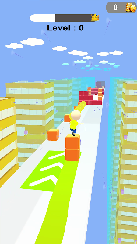 The character moves surfing on a cube, and your goal is to collect all the cubes. Create as huge stack as you can. Collect all the cubes you can to keep surfing without crashing into walls or obstacles.
