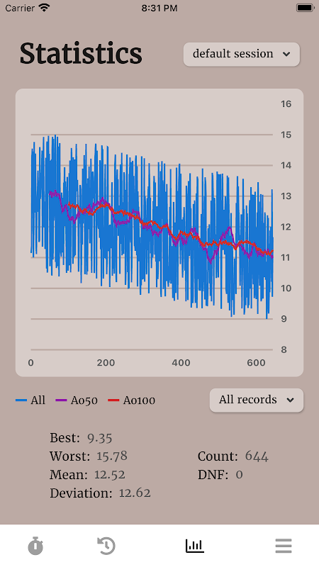 Cuby is a simple and clean Rubik's Cube timer with nice statistics graph. The app supports some intuitive gestures to help you delete last solve, generate scramble, etc.