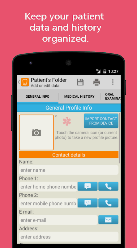 ★ Tùy chọn in ấn cho thư mục sức khỏe, biểu đồ răng, đồ nha chu, hướng dẫn sử dụng thun chỉnh nha, hồ sơ thanh toán và kế hoạch điều trị, xuất sang PDF.