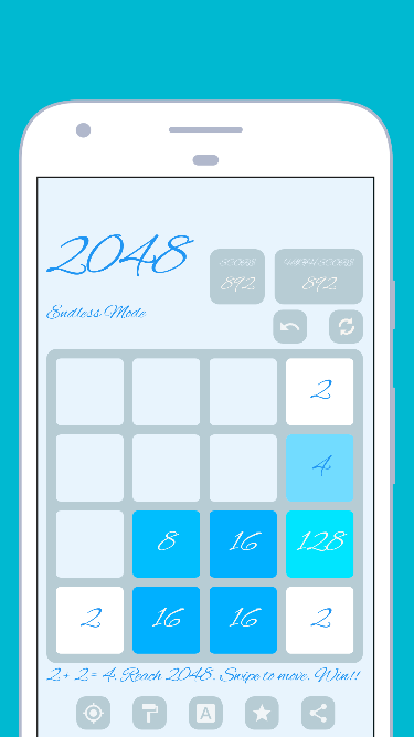 Đặt mục tiêu (mặc định là 2048). Vuốt để di chuyển các ô, khi hai ô có cùng số chạm nhau, chúng hợp nhất thành một. Khi một ô mục tiêu được tạo, người chơi sẽ thắng! 2, 4, 8 .. 16 ... 1024 .. 2048
