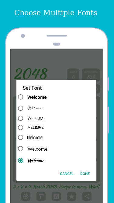 Đầy đủ và gây nghiện 2048 trò chơi. Mục tiêu tùy chỉnh, Nhiều chủ đề và Phông chữ.