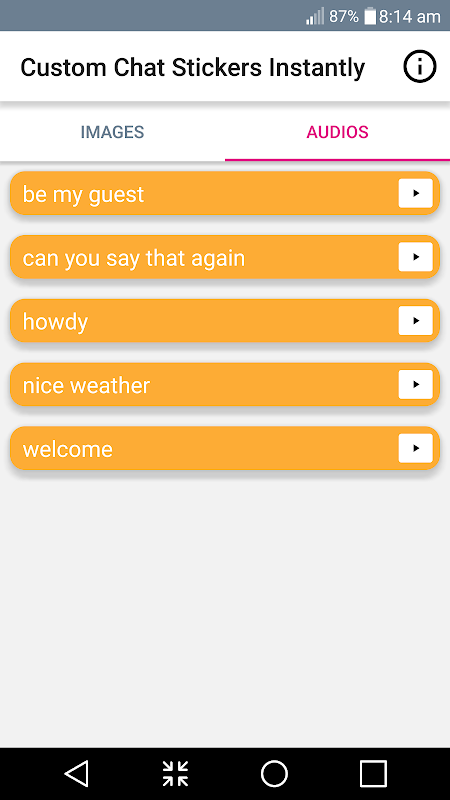 This app provides an easy way to store and manage custom chat stickers - your favourite image/audio that you reuse again and again in WhatsApp chat rooms.