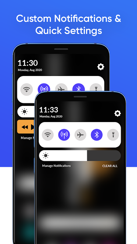 Custom Notifications and Quick Settings gives a smooth, quick and local inclination Android styled speedy setting and warning board at the base of your screen, permitting you to flip settings like WiFi, Bluetooth, Flash and some more, just as adding easy routes to applications and sites in the board as well! This application is intended to supplant your phone's notice drop-down menu with an advanced, completely customisable variant.
