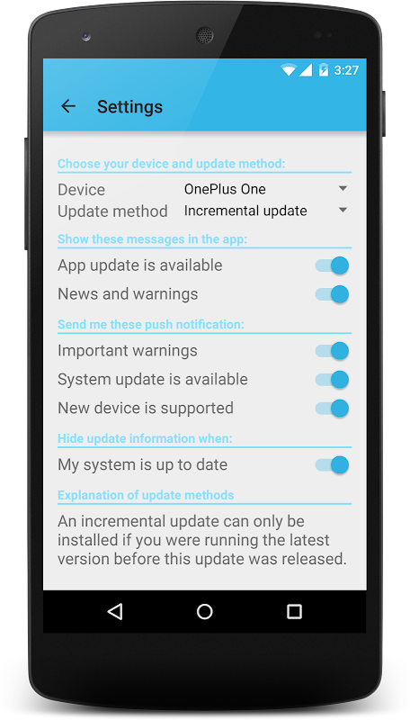 Chú ý: Ứng dụng này sẽ * không * tự động cập nhật thiết bị của bạn. Tuy nhiên nó không bao gồm hướng dẫn cài đặt cho thấy làm thế nào bạn có thể tự áp dụng các bản cập nhật được tải về. Quá trình cập nhật này sẽ không xóa sạch thiết bị của bạn. Đó là đề nghị để đọc hướng dẫn cài đặt đầu tiên để tránh làm cho một sai lầm trong quá trình cập nhật.