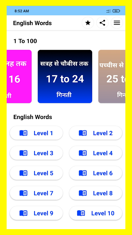 Sử dụng hàng ngày các từ tiếng Anh trong tiếng Hindi, ứng dụng học tiếng Anh