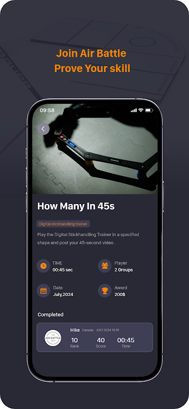 DangleElite là một thiết bị hỗ trợ huấn luyện môn khúc côn cầu trên băng. Thiết bị này có thể được sử dụng cùng với APP để xem tốc độ, điểm số và thời gian luyện tập trong thời gian thực.