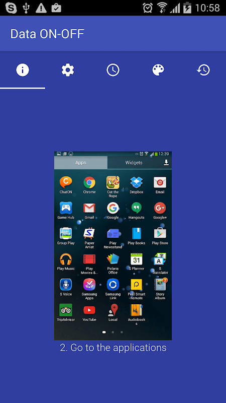 - if the mobile data setting changes (not changed by Data ON-OFF) when the phone is connected to a WiFi network, Data ON-OFF ignores the change and does not update the widget icon. This is an implementation choice, that saves some memory RAM.
