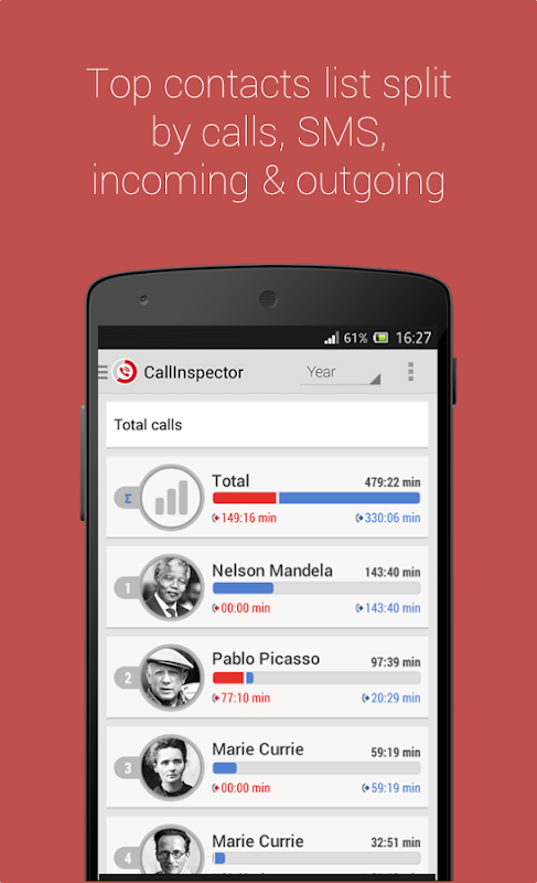 Our app helps you know yourself and your contacts a lot better, analyze your mobile habits, data consumption and call statistics, delivering beautiful analytics directly to your Android device for free, no advertisements to bother you.