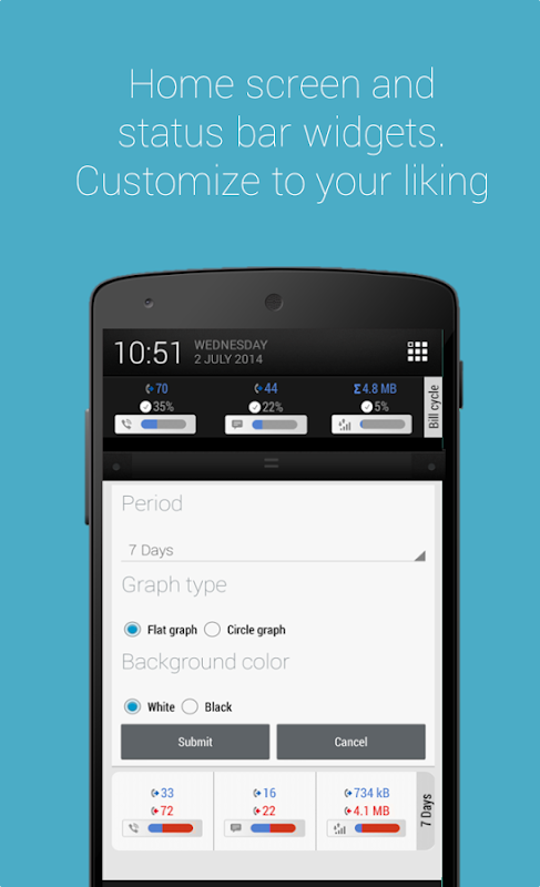 ★ Set-up Billing cycle and monitor data use, call statistics with information about remaining units as well as already spent units