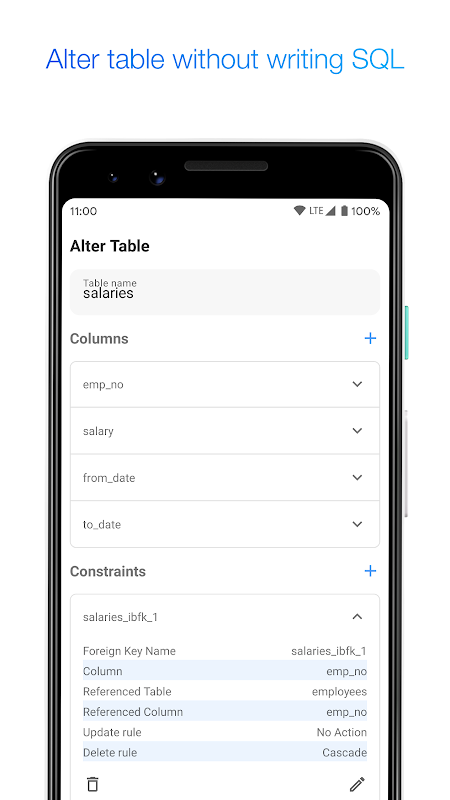 - Create or update tables without writing any SQL. You can directly do it by application UI