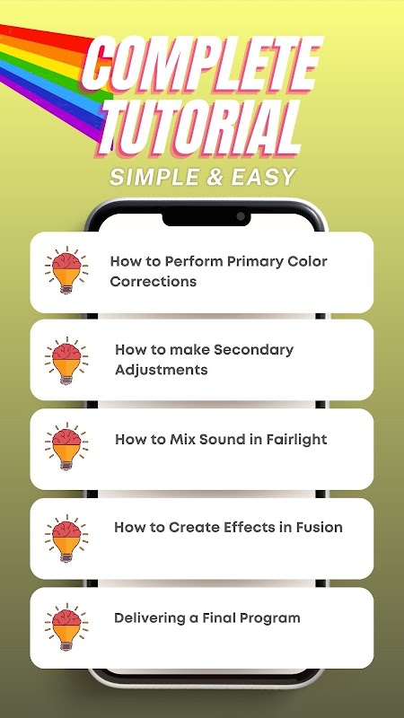 Ứng dụng này cung cấp một bộ hướng dẫn và khóa học toàn diện bao gồm những điều cơ bản về chỉnh sửa video, phân loại màu và trộn âm thanh bằng phần mềm DaVinci Resolve. Bạn sẽ tìm hiểu cách nhập, chỉnh sửa và xuất video cũng như cách áp dụng hiệu chỉnh màu sắc và phân loại để nâng cao tính thẩm mỹ trực quan cho cảnh quay của bạn.