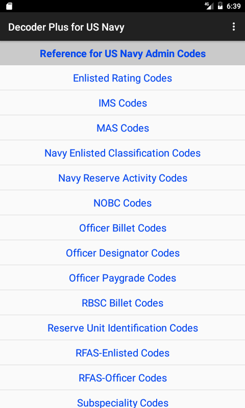 Ứng dụng này là hướng dẫn tham khảo nhanh cho nhiều nhân viên Hải quân Hoa Kỳ và các mã khác. Thay vì mất thời gian tìm tài liệu tham khảo chính xác và tra cứu thông tin, ứng dụng này sẽ cho phép người dùng nhanh chóng có được câu trả lời.