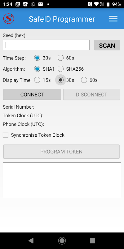 Sử dụng ứng dụng này để ghi hạt giống / bí mật vào mã thông báo có thể lập trình SafeID / Diamond