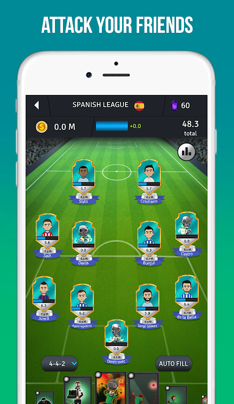 - Buy and sell football players in the transfer market, just stay under the budget