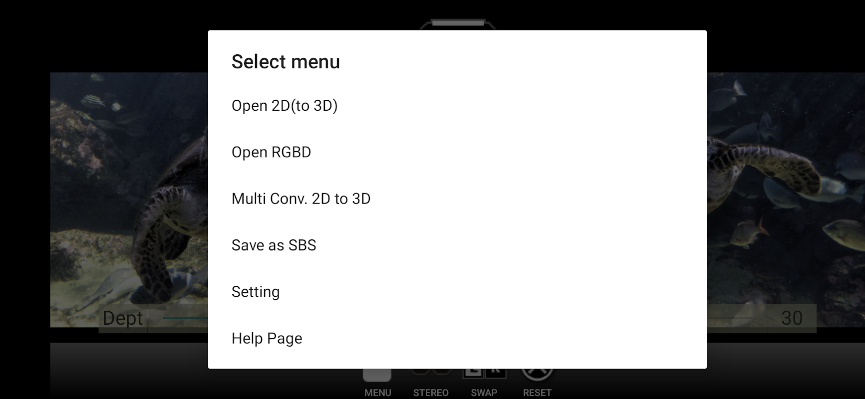 1. Chuyển đổi hình ảnh 2D được chỉ định thành hình ảnh 3D và hiển thị chúng ở nhiều định dạng 3D khác nhau như SBS, các định dạng anaglyph khác nhau, định dạng RGBD, v.v.