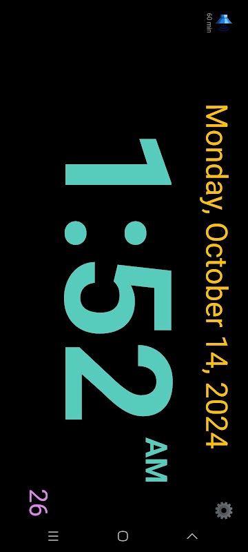 - Đồng hồ để bàn ở chế độ ngang hiển thị ngày, tháng, giờ, phút và giây.