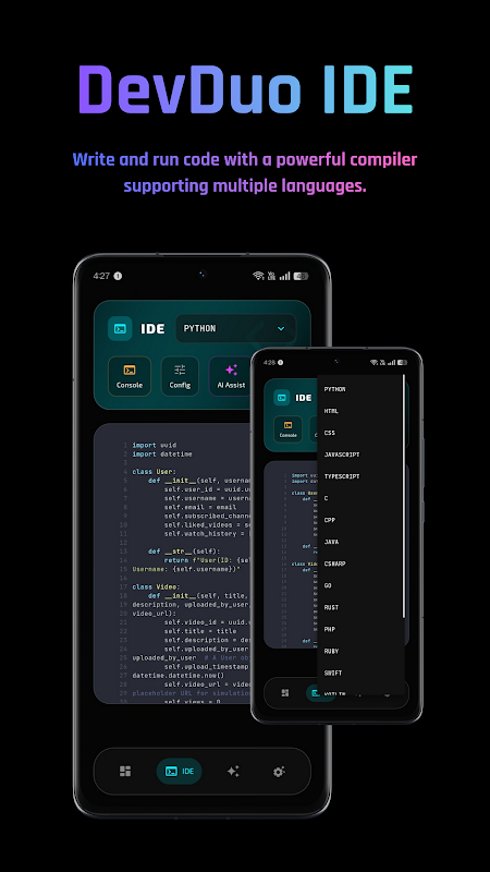 Trước đây được gọi là Programming Files Viewer, ứng dụng này đã phát triển thành một Môi trường Phát triển Tích hợp (IDE) hoàn chỉnh, hỗ trợ AI, được thiết kế dành cho sinh viên, nhà phát triển web và lập trình viên chuyên nghiệp. Cho dù bạn đang học Python hay gỡ lỗi mã sản xuất khi đang di chuyển, DevDuo IDE là trung tâm chỉ huy bỏ túi của bạn.