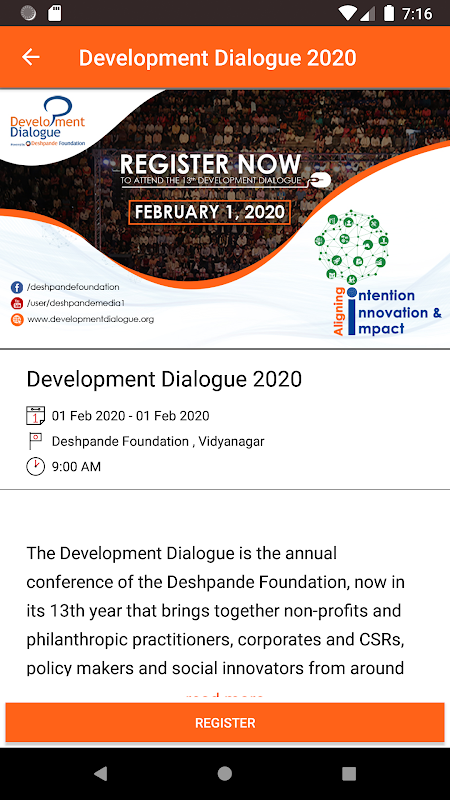 The Development Dialogue is the annual conference of the Deshpande Foundation, now in its 13th year that brings together non-profits and philanthropic practitioners, corporates and CSRs, policy makers and social innovators from around India and the world to share their learnings and experiences. The Development Dialogue will be held on 1st February, 2020 at Hubballi, Karnataka.