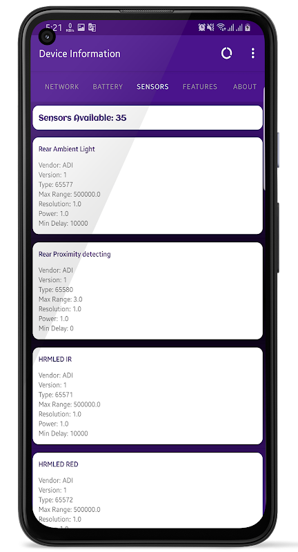 Thông tin về cảm biến: Nhận thông tin chi tiết về các cảm biến trên thiết bị của bạn bao gồm Cảm biến từ tính, Con quay hồi chuyển, Gia tốc kế, Cảm biến định hướng, Vector xoay và nguyên tắc hoạt động của chúng.
