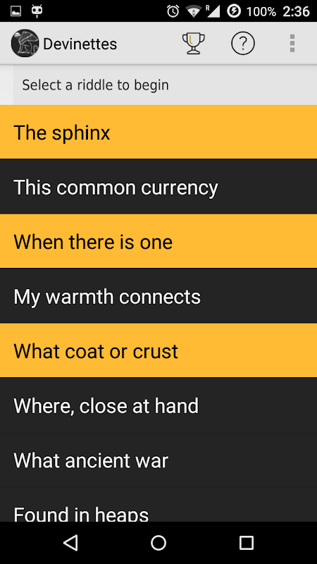 There are no permissions required and no advertisements. The source code is stored at https://github.com/polypmer/devinettes-android