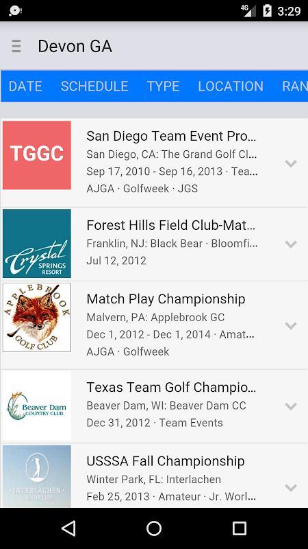 The Devon Golf app for Android.