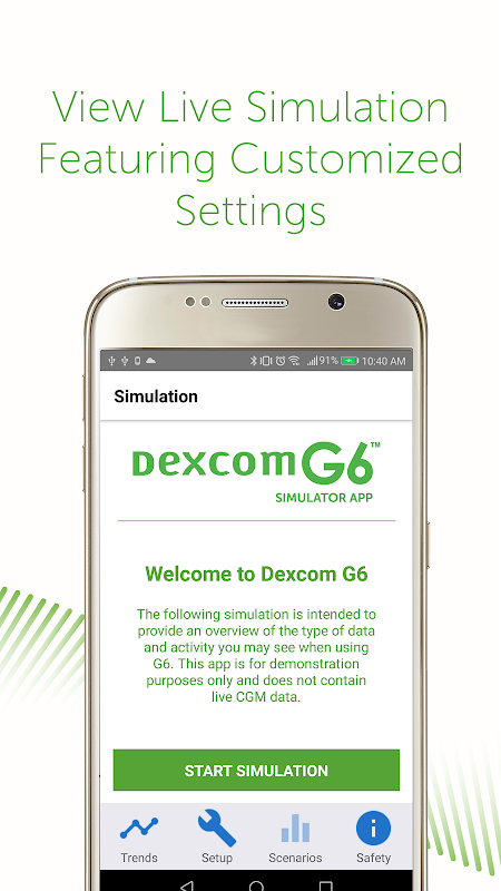 Dexcom G6 Simulator ứng dụng nêu bật tính năng từ Dexcom G6 Hệ thống CGM.