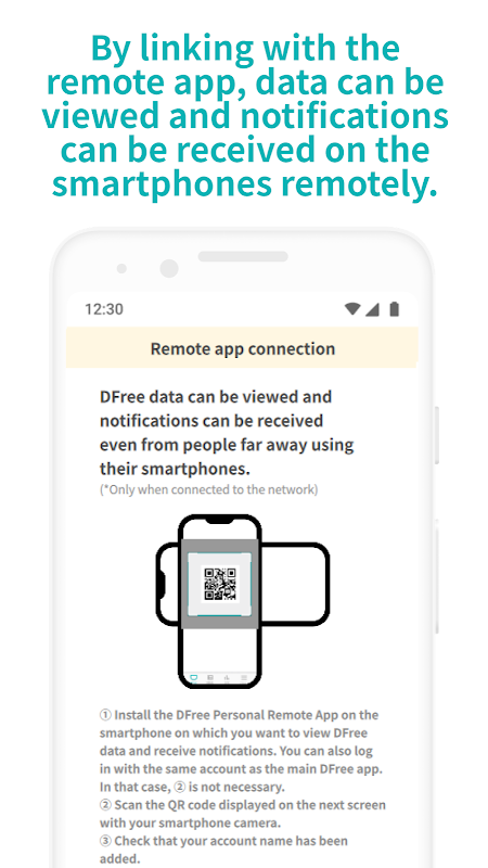 ■ Khi bạn tải ứng dụng từ xa DFree Personal riêng biệt xuống một thiết bị khác, bạn có thể xem dữ liệu DFree từ xa và nhận thông báo.