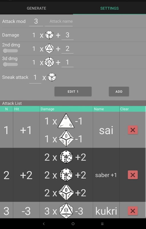 Có thể thêm đòn tấn công lén lút và cũng có thể điều chỉnh số lượng xúc xắc tấn công.