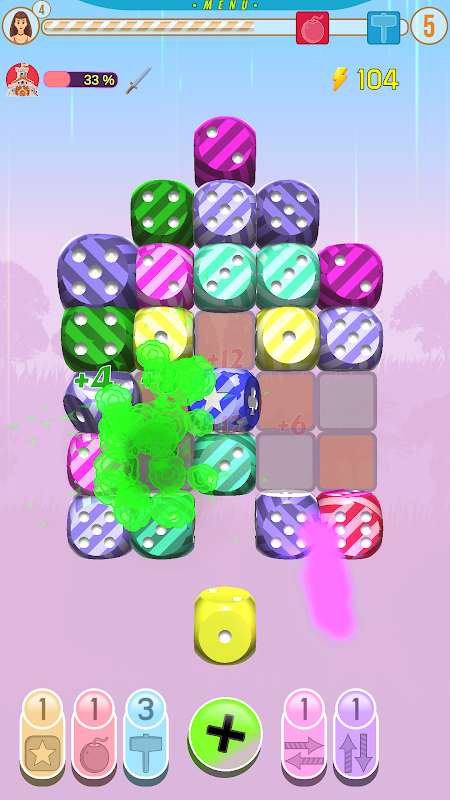 Khi gặp khó khăn, người chơi có thể sử dụng công cụ hỗ trợ: 1. Mighty Hammer - tấn công và phá hủy bất kỳ viên xúc xắc nào bằng tia sét trực tiếp. 2. Bomb - diện tích 3x3 rõ ràng. 3. Thêm một Ngôi sao mà chúng ta có thể di chuyển bên trong bảng. 4. Tên lửa tấn công - xóa dòng hoặc cột khỏi tất cả các khối. Khi bắt đầu, người chơi nhận được một lượng tên lửa đẩy ban đầu và người chơi giành được thêm lượng tên lửa đẩy khác bằng cách chơi nhiều hơn và lên cấp, bằng cách hợp nhất thêm m xúc xắc. Người chơi có thể chọn ảnh đại diện và biệt hiệu của mình bằng cách nhấp vào biểu tượng ảnh đại diện.
