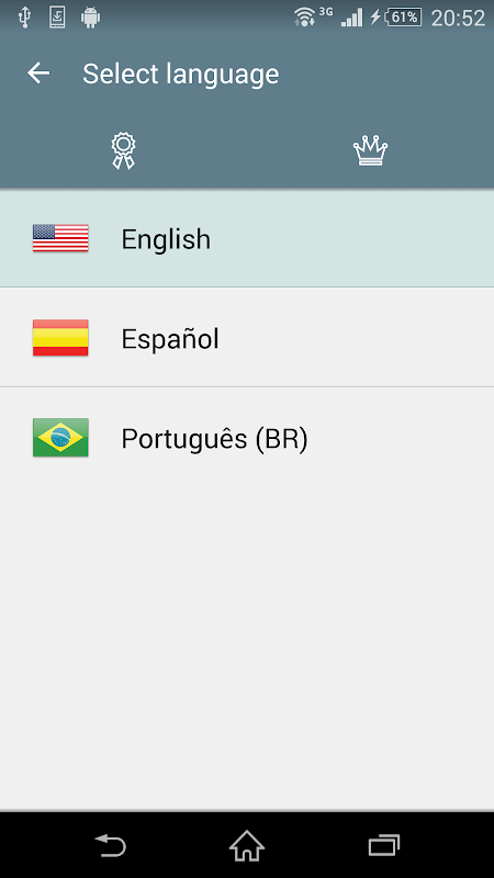 Các từ có sẵn bằng các ngôn ngữ sau: tiếng Anh, tiếng Bồ Đào Nha Brazil (português brasileiro) và tiếng Tây Ban Nha (español).