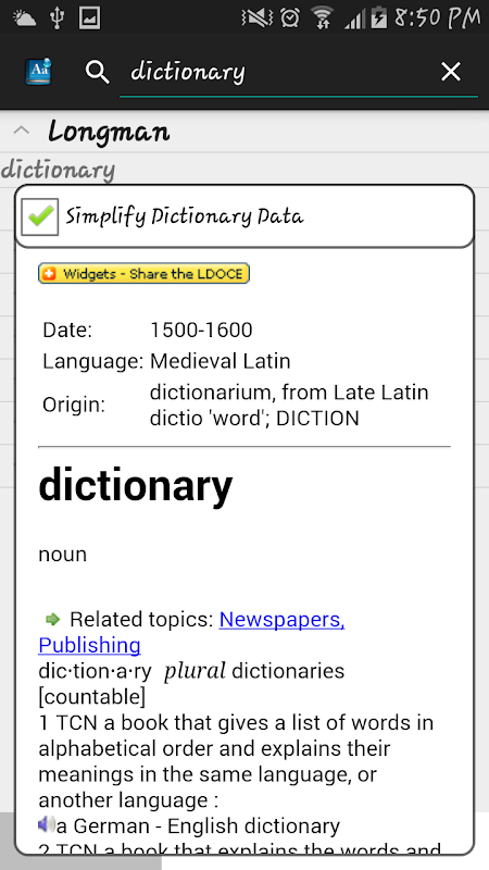 It include Various Dictionaries: Longman, MacMillan, Collins, Cambridge, Chambers, Merriam-webster and Oxford Dictionary.