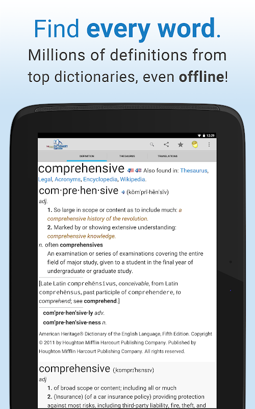 Từ điển và từ điển đồng nghĩa trực tuyến và ngoại tuyến miễn phí với mọi từ bạn tra cứu. Hàng triệu định nghĩa từ các nguồn đáng tin cậy như: