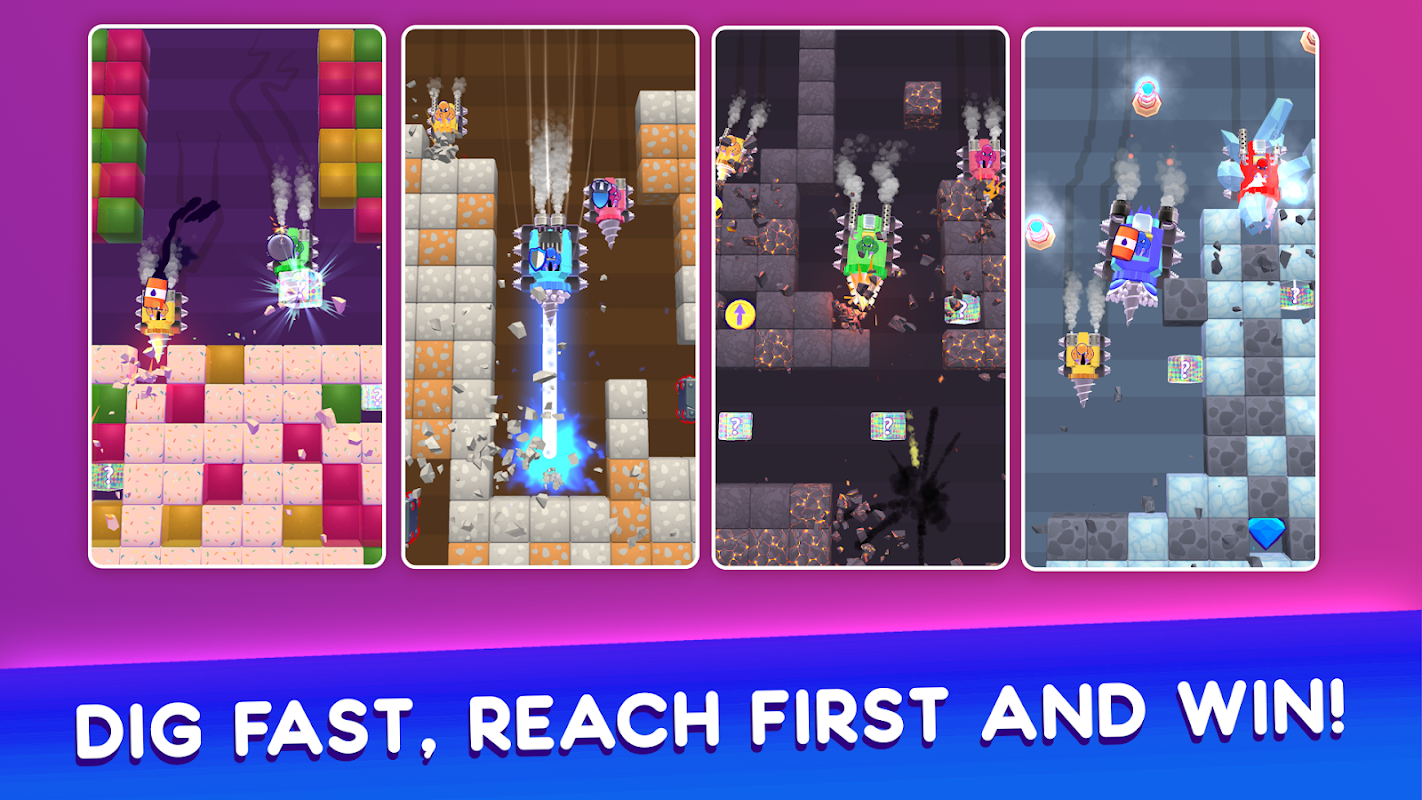 Đào qua địa hình đầy thử thách, gặp chướng ngại vật và khám phá các nâng cấp và công cụ có giá trị trên đường đi. Lập chiến lược và sử dụng sức mạnh để giành lợi thế trước đối thủ của bạn.
