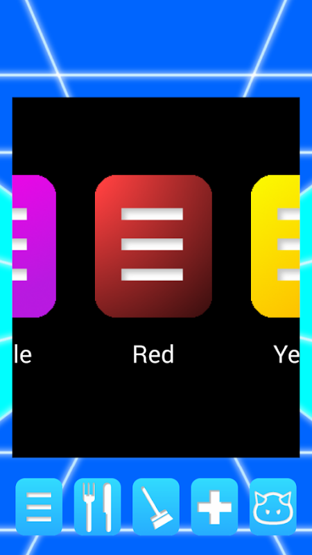 Nút Thực phẩm (thứ hai): Hiển thị hai lựa chọn thực phẩm. Pizza và táo.
