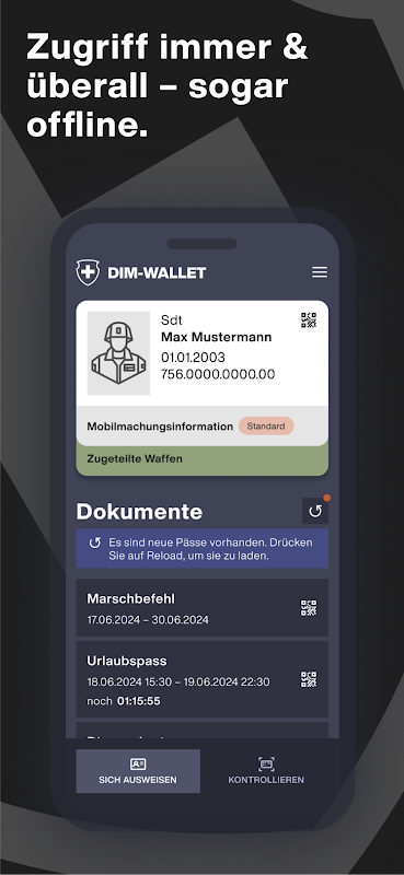 Ví DIM là ứng dụng di động dành cho các thành viên của quân đội (AdA). Nó cho phép AdA cung cấp các tài liệu quân sự cá nhân của họ ở dạng ngoại tuyến và kỹ thuật số. Với ví DIM, AdA có thể nhận dạng chính mình mà không cần giấy tờ trước, trong và sau khi làm việc.