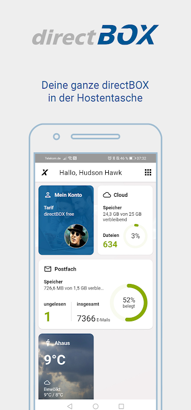 Trải nghiệm tự do di động! Với ứng dụng directBOX, bạn luôn có quyền truy cập vào e-mail, ảnh, video, nhạc và các tài liệu quan trọng, ngay cả khi bạn đang di chuyển.