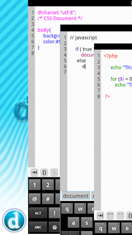 With our app you a webmaster can edit codes like HTML, HTML5, PHP, Javascript, CSS, XML and even plain text.