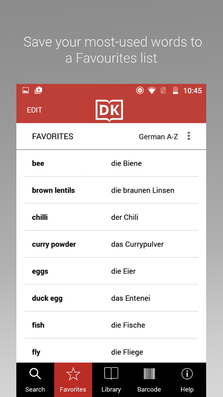 • Lưu những từ được sử dụng nhiều nhất vào danh sách Yêu thích. Yêu thích có thể dễ dàng được thêm hoặc xóa bất cứ lúc nào