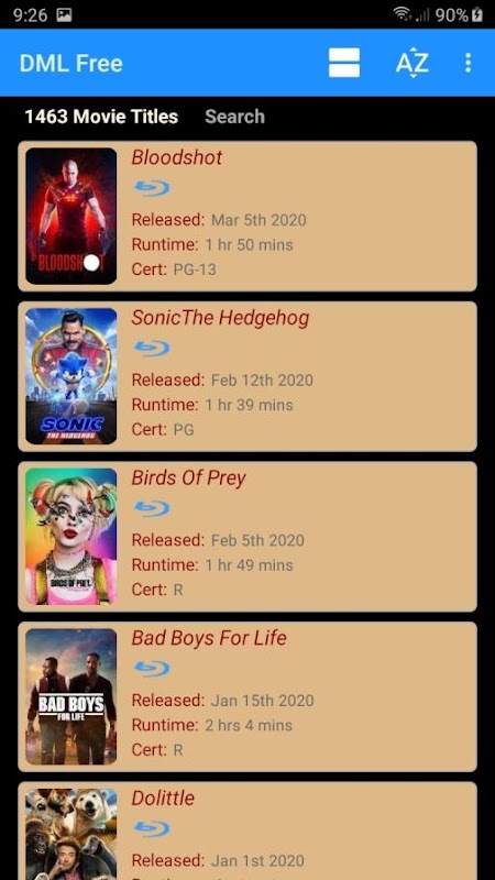 Có hai tùy chọn Sắp xếp, Sắp xếp theo tiêu đề A-Z và Sắp xếp theo Ngày phát hành, Phim mới nhất trước tiên.