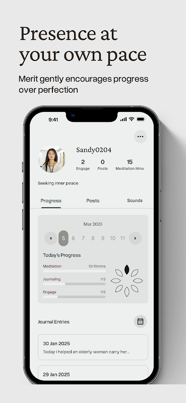 Biến những khoảnh khắc thường nhật thành cơ hội thực hành chánh niệm. Do Merit thích ứng với lối sống độc đáo của bạn, giúp bạn dễ dàng tiếp cận thiền định và tự suy ngẫm bất kể sự tĩnh lặng thể hiện như thế nào trong thế giới của bạn.