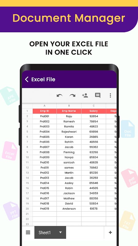 Document Reader and Document Viewer for your phone lets you easily view Word, Excel, PowerPoint, Text and PDF files. It also supports multiple compatibility with office formats including DOC, DOCX, XLS, TXT, XLSX, PPT, PPTX and PDF.
