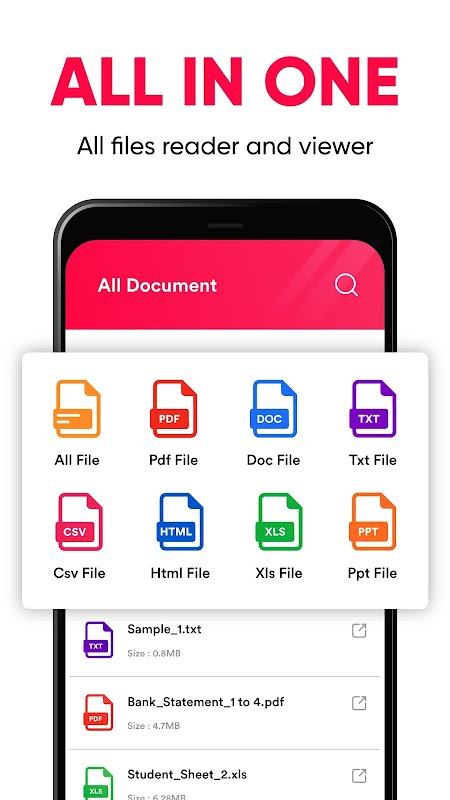 All Document reader app is easy to use and gets a list of all documents on your phone at a single location. Quickly print and share, read PDF files documents through another app.