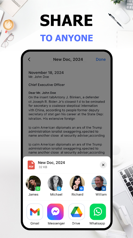 Sử dụng thiết bị di động của bạn để quét tài liệu và chuyển chúng thành PDF. Bạn cũng có thể tạo ngay danh thiếp và danh thiếp từ hình ảnh sang định dạng PDF.